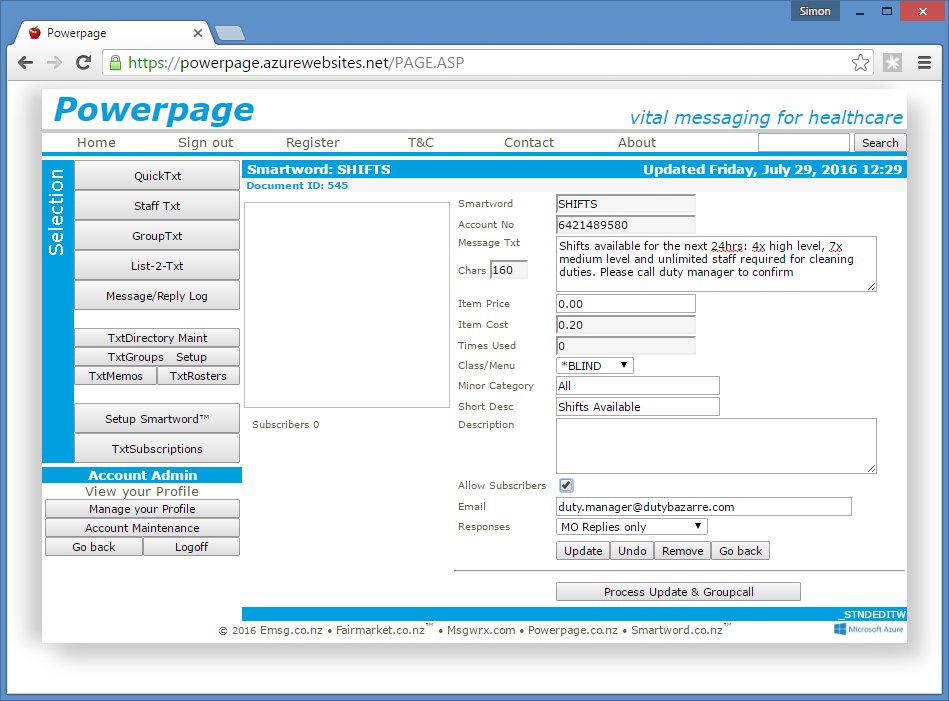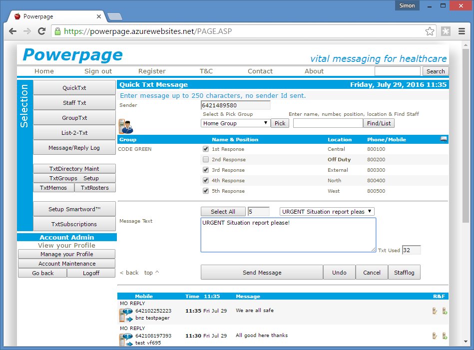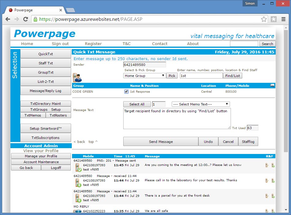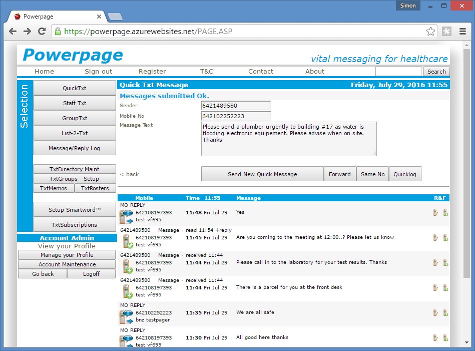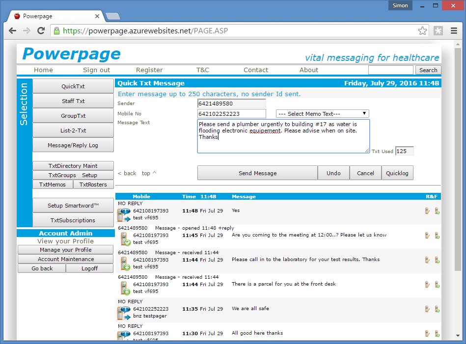 Powerpage gives users the ability to send two-way text messages directly to mobile phones and one-way to pagers from their email system or web-browser over an Intranet or the Web.